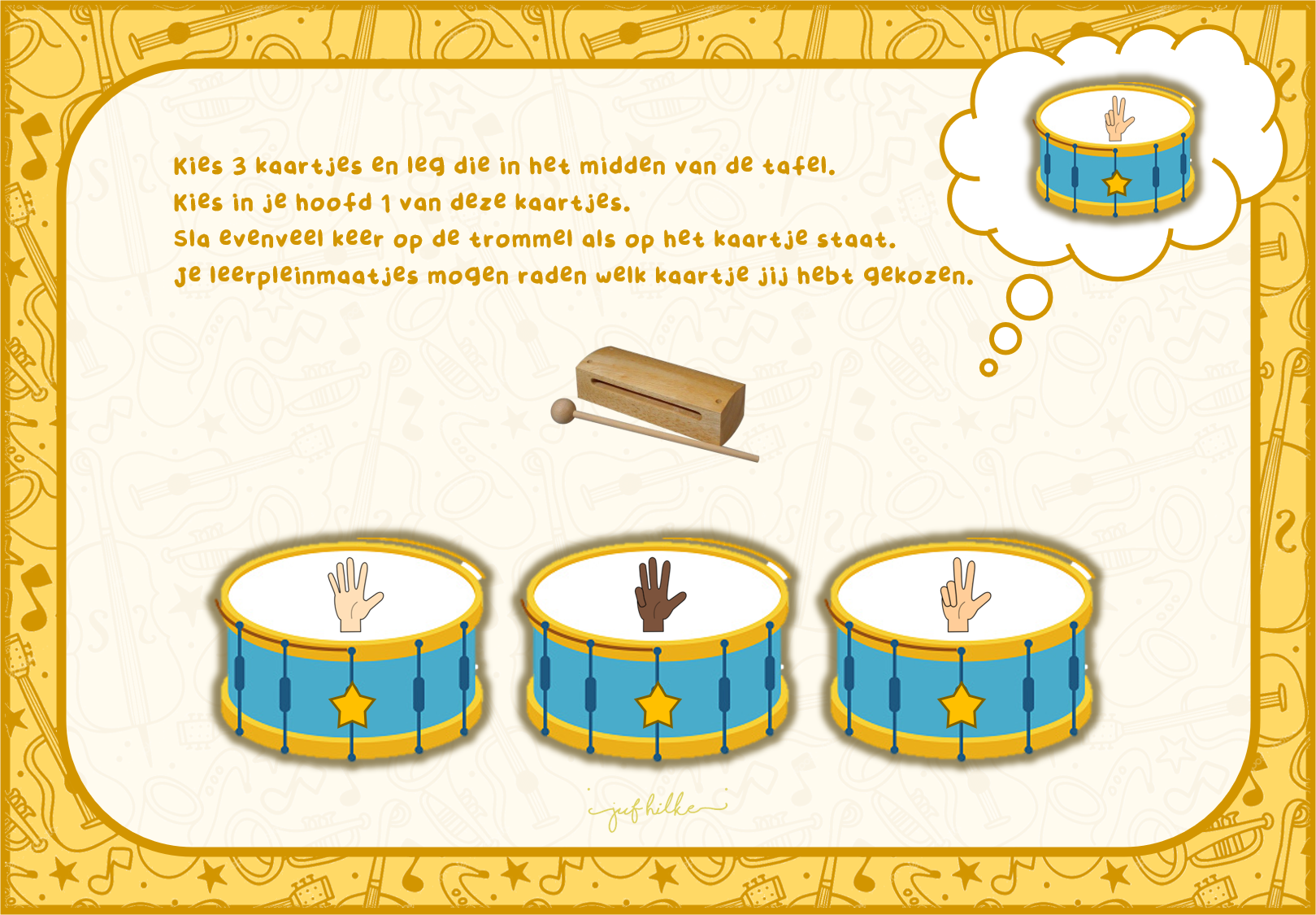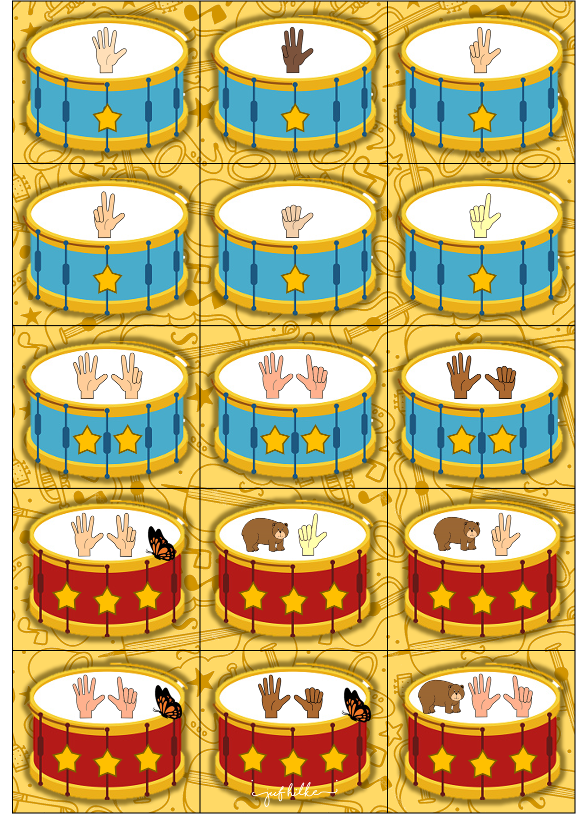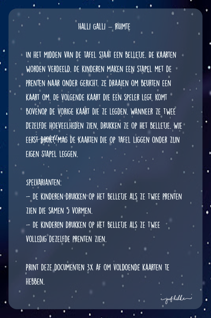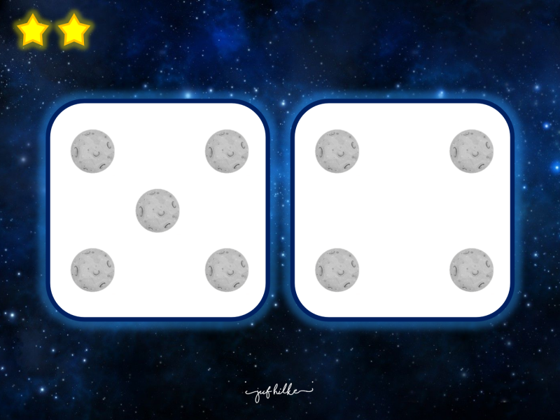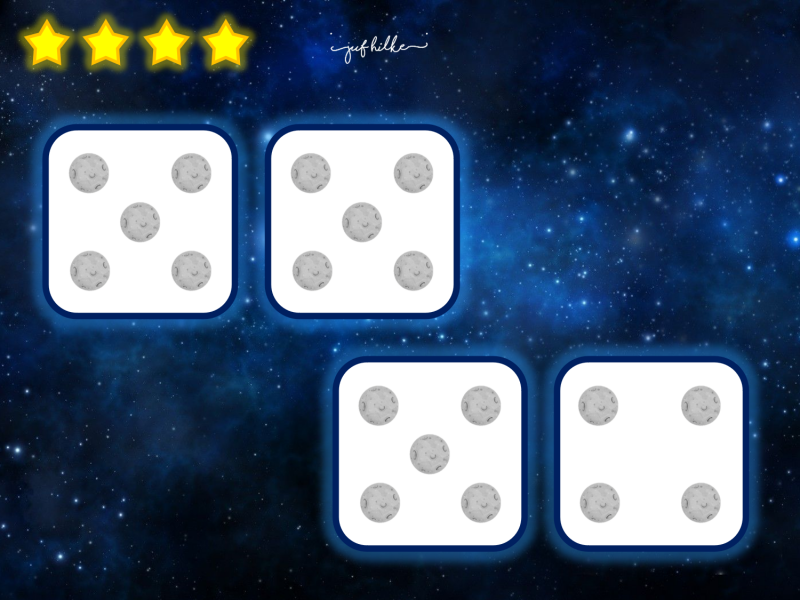 We gebruikten ze ook als tegels voor een levend ganzenbord. Wanneer ze op een tegel terechtkwamen, moesten ze het juiste aantal zeggen. Als ze juist waren, mochten ze een sterretje in hun potje stoppen. Wie 10 sterretjes heeft, mag een ander kindje halen die dan meedoet.