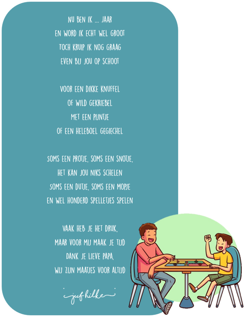 ('papa' in het versje kan ook makkelijk aangepast worden naar 'mama' of ...)